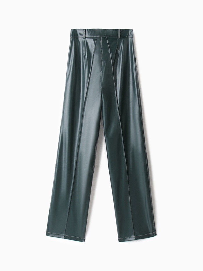 Брюки из экокожи женские MINAKU: Eco leather, зелёные, размер 48
