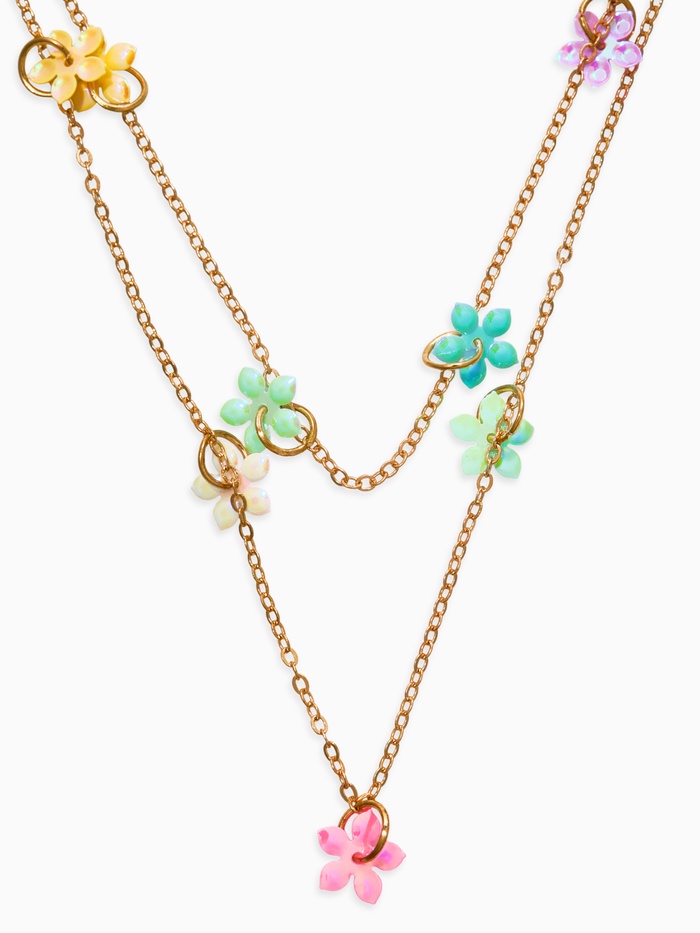 - Особенности: двухуровневый комплект (цепочка + чокер), декоративные элементы из прочной эпоксидной смолы с красочными узорами-бабочками и цветами;
