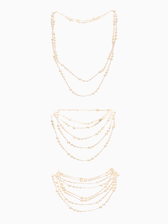 Бусы жемчужные, длинные, d=3.4, 5.6, 8.10, белые в золоте