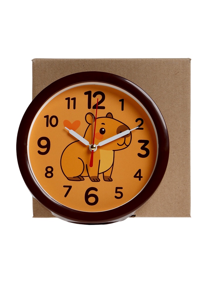 Коричневый будильник с плавным ходом стрелок — это идеальный спутник для детской комнаты. Круглый корпус диаметром 15 см в уютном коричневом оттенке создаёт ощущение тепла и безопасности, подходящее для маленьких исследователей. Оранжевый циферблат с изображением дружелюбной капибары добавляет веселья и позитива, превращая будильник в забавный аксессуар, который дети с радостью увидят утром.