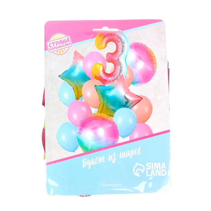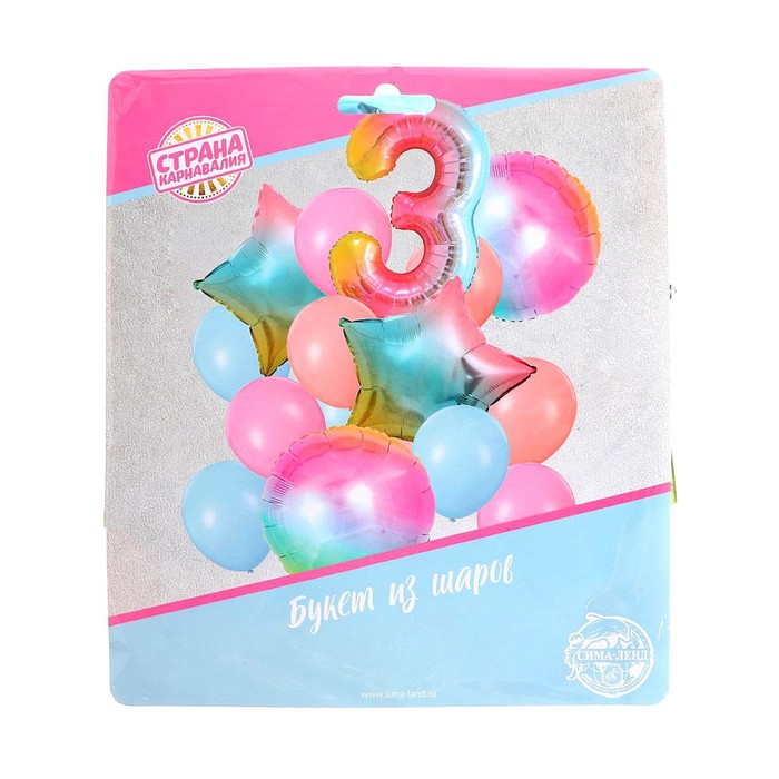 Букет из шаров «День рождения – нежность. 3 года», фольга, латекс, набор 15 шт.