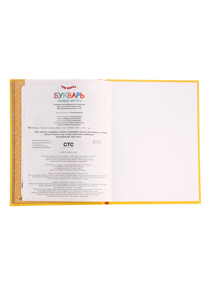 Технические характеристики Букварь "Три кота. Учимся читать", 48 стр. 978-5-506-11351-5