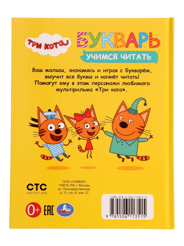 Букварь "Три кота. Учимся читать", 48 стр. 978-5-506-11351-5