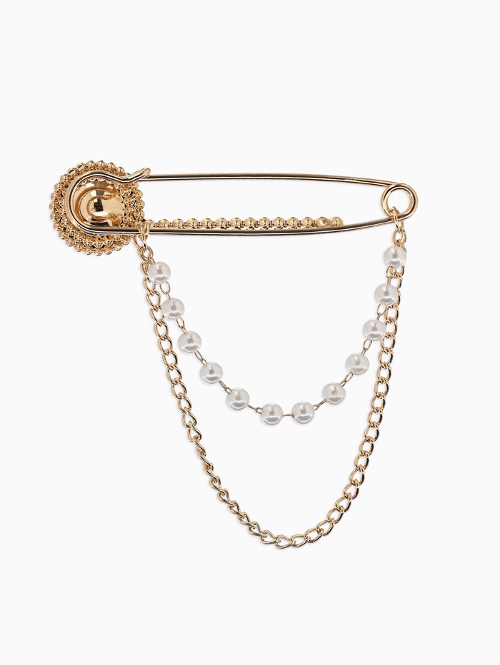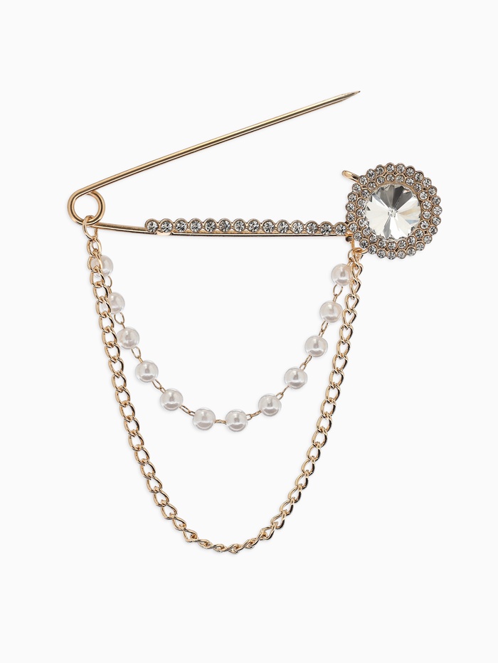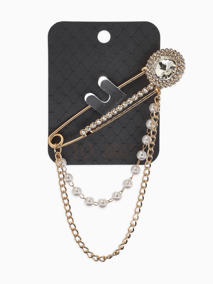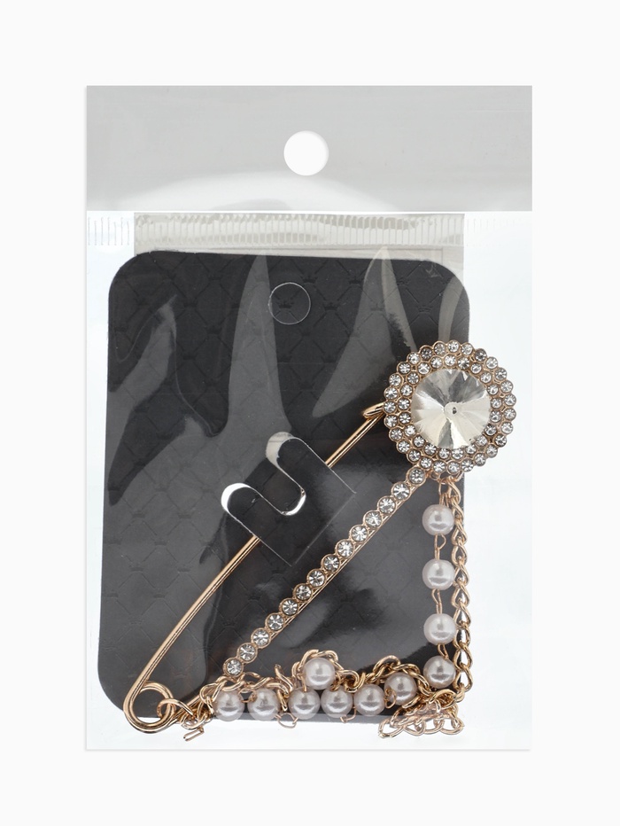 Технические характеристики Булавка «Императрица. Цепочка и жемчуг», в стразах, L=7.5 см, белая в золоте