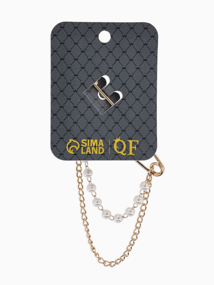 Булавка «Императрица. Цепочка и жемчуг», в стразах, L=7.5 см, белая в золоте