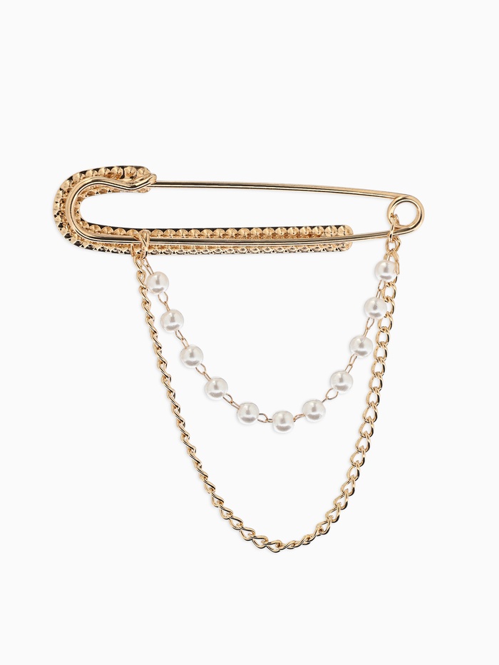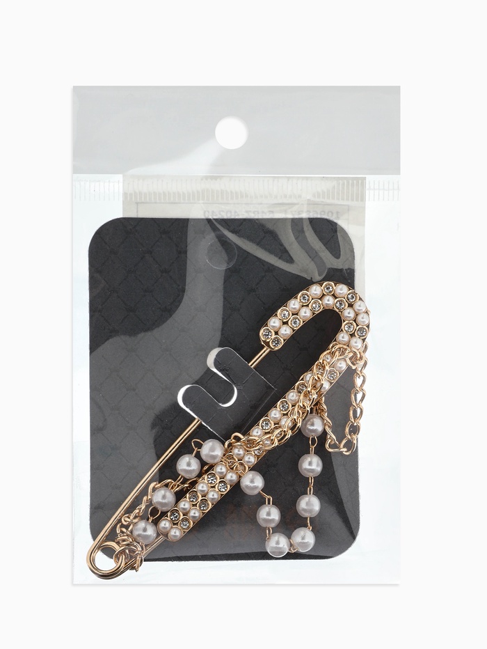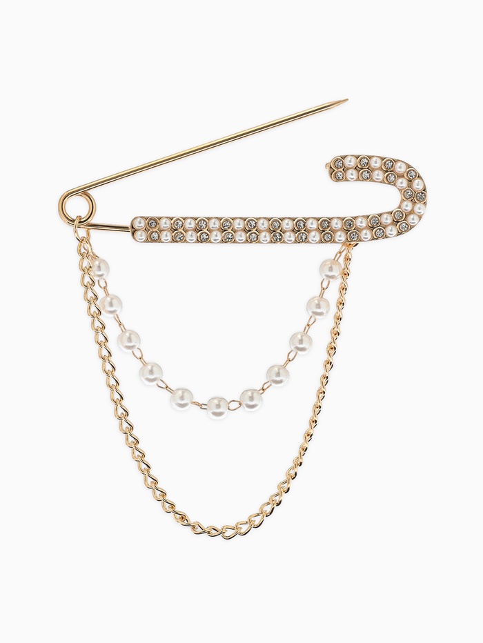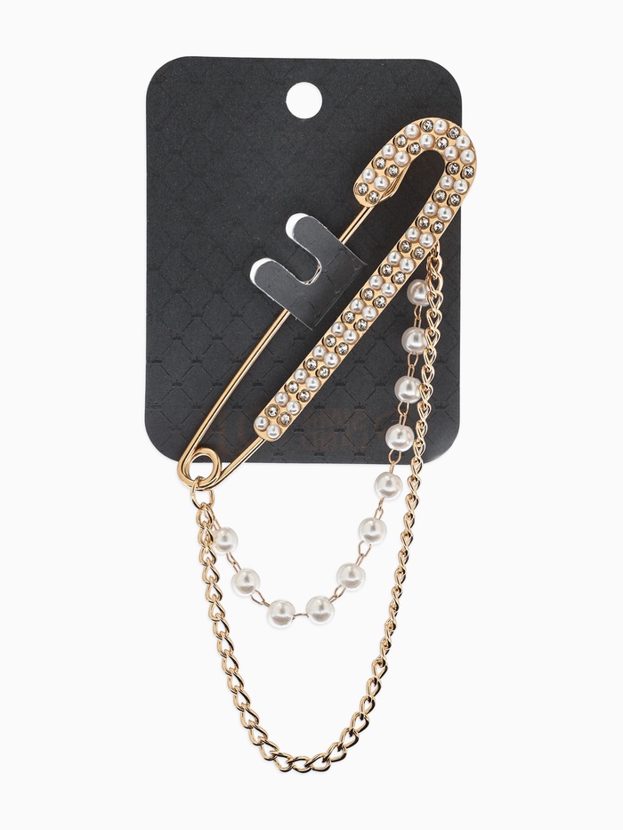 Технические характеристики Булавка «Шик цепочки и жемчуга», в стразах, L=7.5 см, белая в золоте