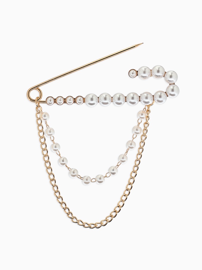 Булавка «Сияние жемчуга и цепочки», L=7.5 см, белая в золоте