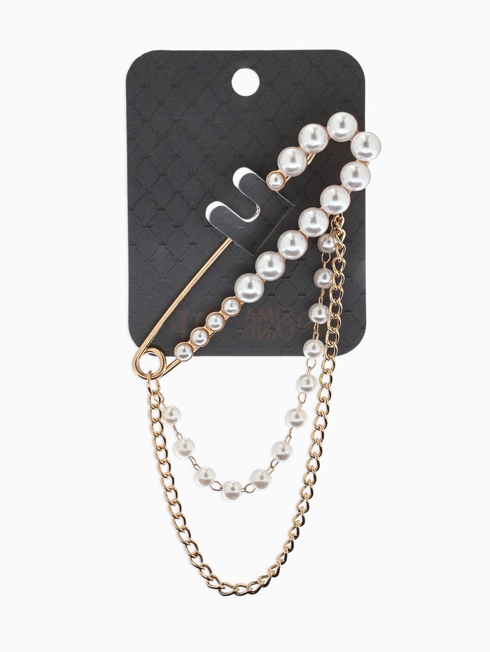 Технические характеристики Булавка «Сияние жемчуга и цепочки», L=7.5 см, белая в золоте