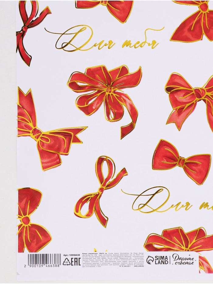Бумага глянцевая «Для тебя», бантики, тисненеие, 70 × 100 см