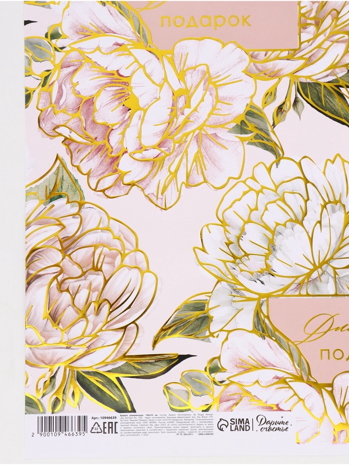 Бумага глянцевая «Подарок для тебя», цветы, тисненеие, 70 × 100 см