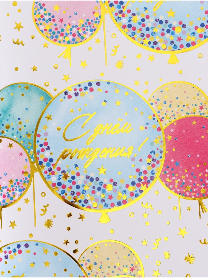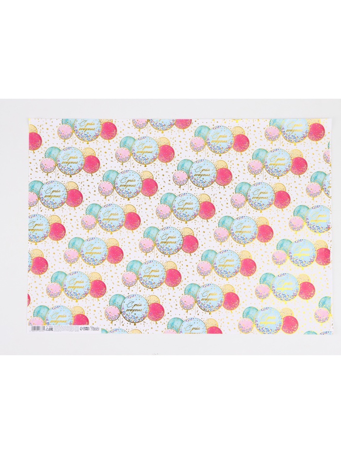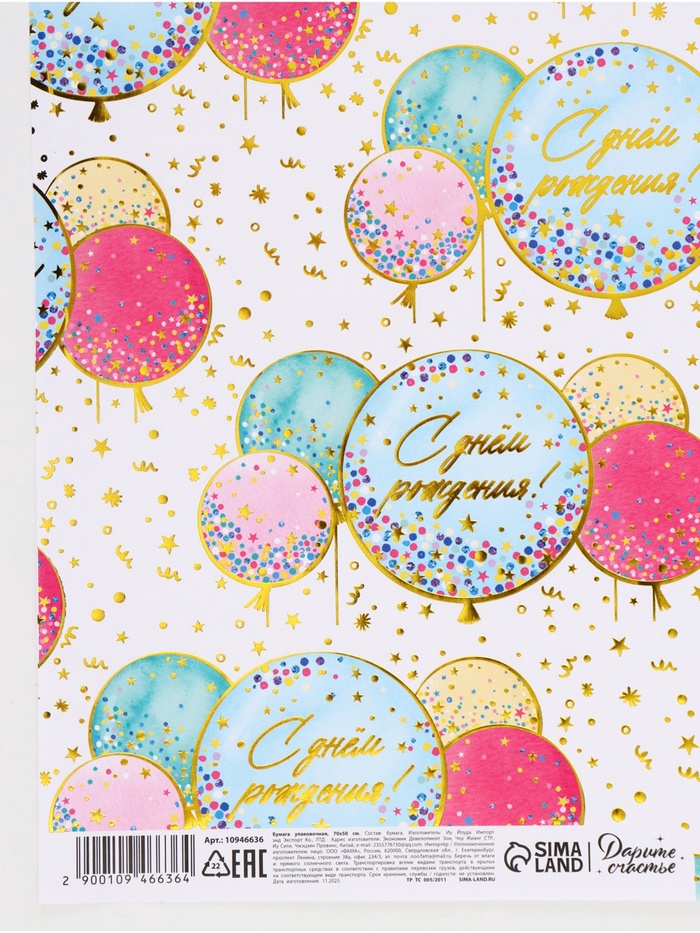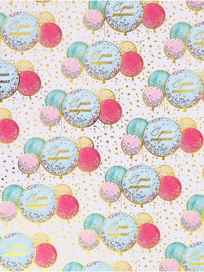 Бумага глянцевая «С Днём рождения», шары, тисненеие, 50 × 70 см