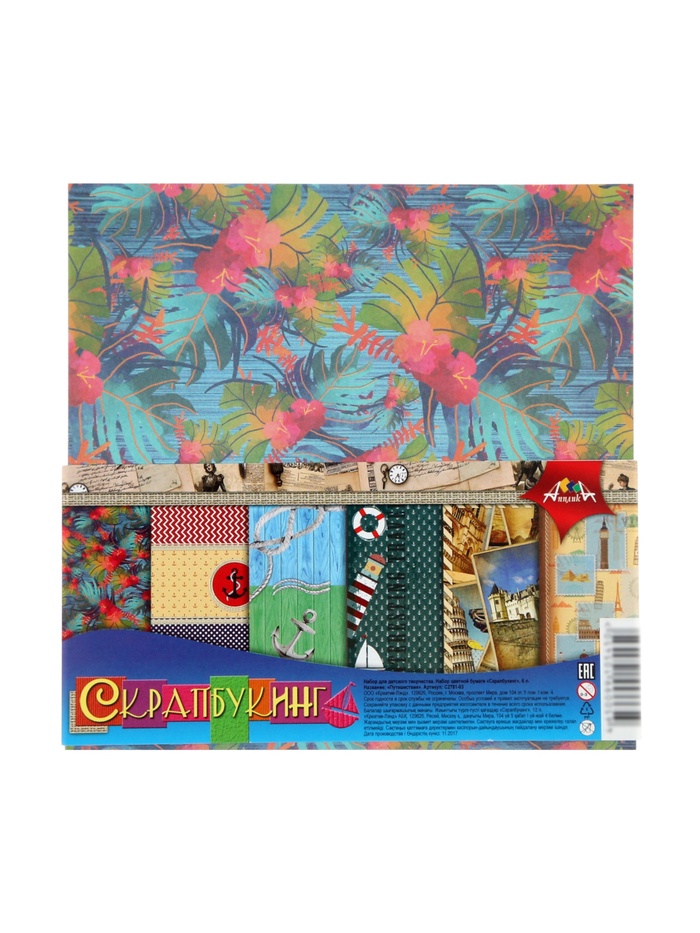 Бумага цветная для скрапбукинга «Путешествие», 6 листов, гофрированный, 15×15 см, 150 г/м² , в пакете