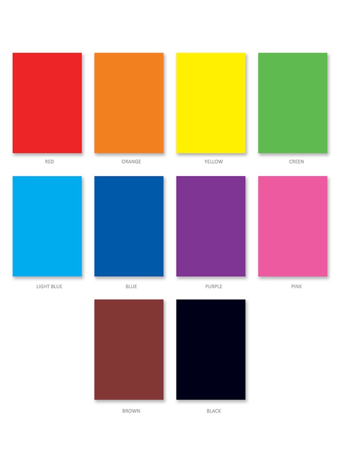 - Цвет: черный, фиолетовый, голубой, коричневый, красный, оранжевый, розовый, синий, зеленый, желтый
