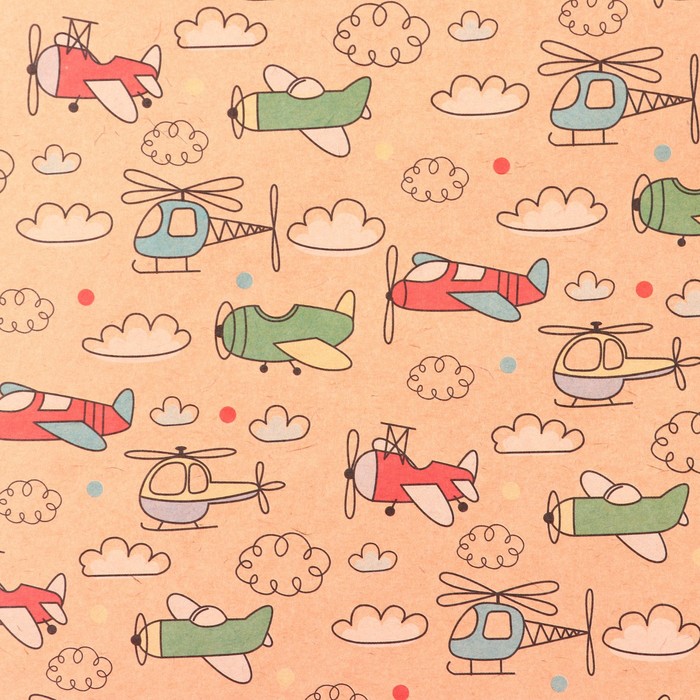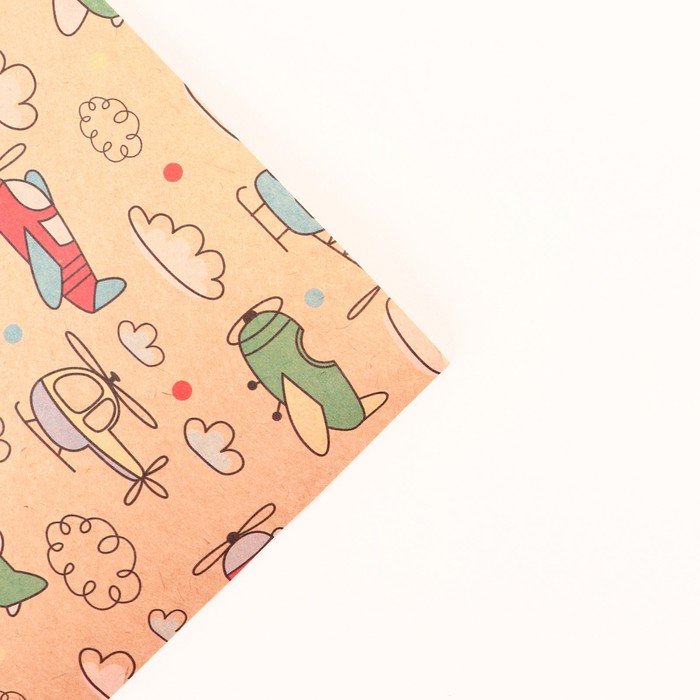 Бумага упаковочная крафтовая «Самолёты», 50 х 70 см