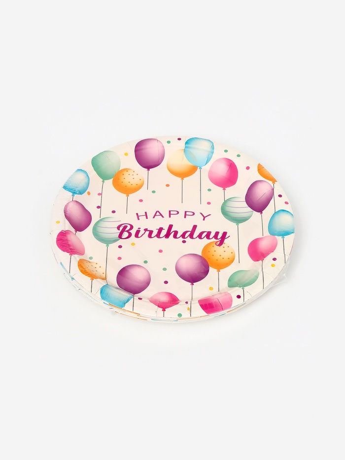 Бумажные тарелки "Happy birthday"шарики, 7д (набор 10шт)