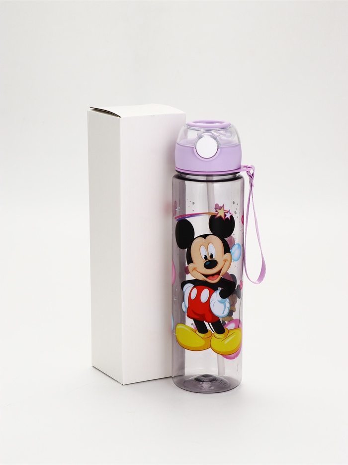 Бутылка пластиковая с трубочкой «Микки Маус», 800 мл, фиолетовая
