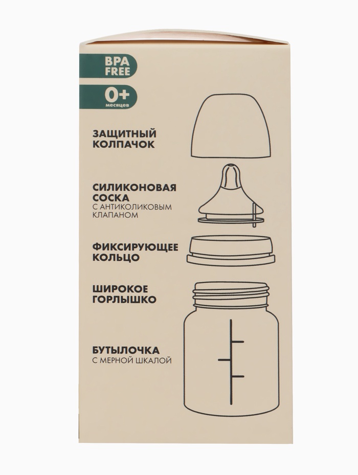 Технические характеристики Бутылочка для кормления, широкое горло Ø50 мм, +0мес., 120 мл, M&B