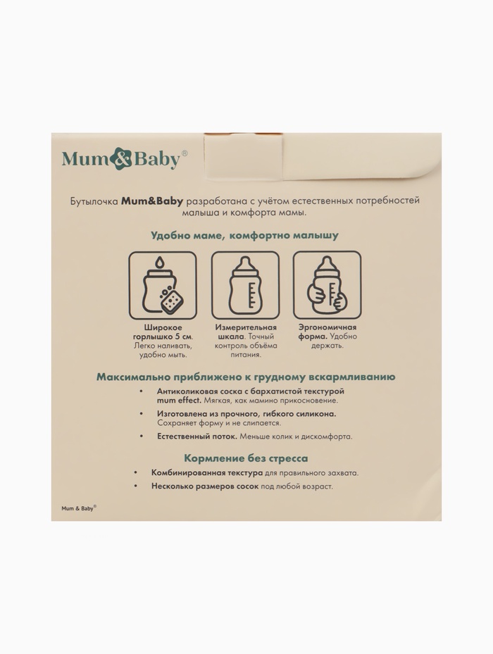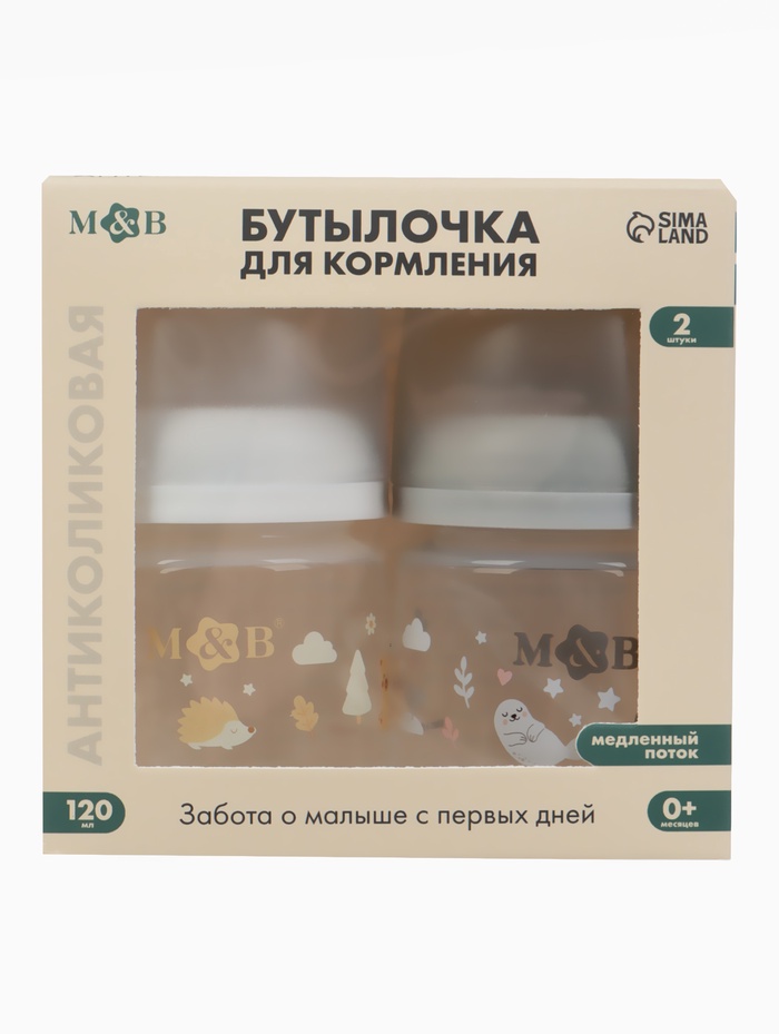 Технические характеристики Бутылочка для кормления, широкое горло Ø50 мм, +0мес., 120 мл, набор 2 шт. M&B