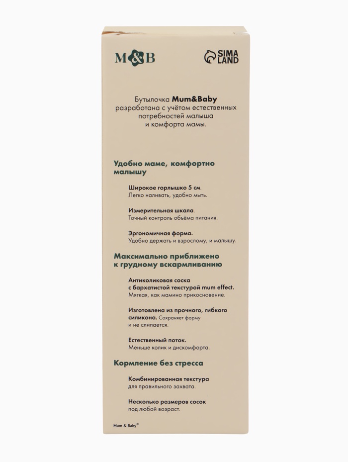 Технические характеристики Бутылочка для кормления, широкое горло Ø50 мм, +3мес., 260 мл, M&B