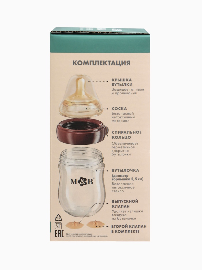 Технические характеристики Бутылочка для кормления, антиколиковая, боросиликатное стекло, 160 мл M&B