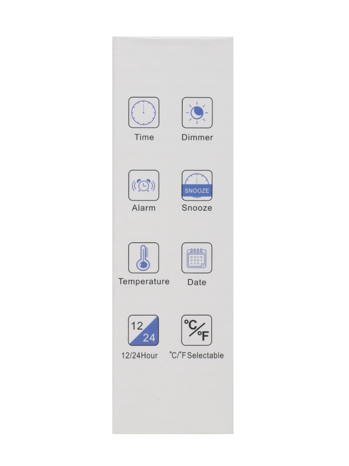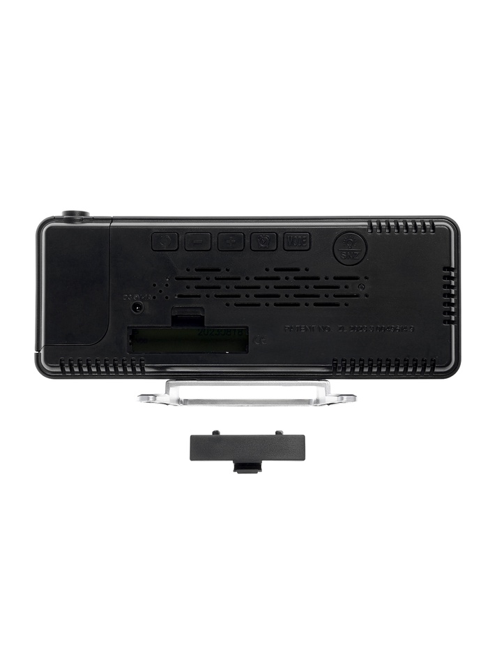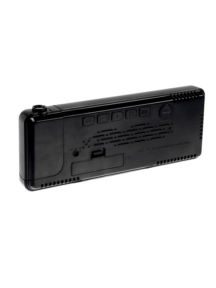 Компактный дизайн с хромированным и чёрным оттенком идеально подходит для современных помещений, где белая подсветка дополняет календарь для планирования, термометр для мониторинга температуры и проектор для мягкого освещения потолка — совершенный выбор для спальни или кабинета.