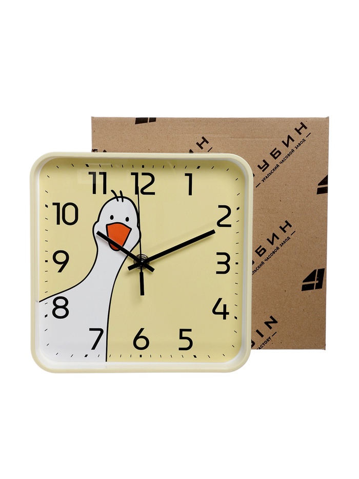 Квадратные настенные часы размером 19×19 см с забавным изображением гуся на ярко-жёлтом фоне привносят солнечное настроение в детскую комнату, где каждый час превращается в маленькое приключение. Кварцевый механизм с плавным ходом стрелок и арабскими цифрами делает процесс обучения времени лёгким и увлекательным, помогая ребёнку ориентироваться в днях с уверенностью.