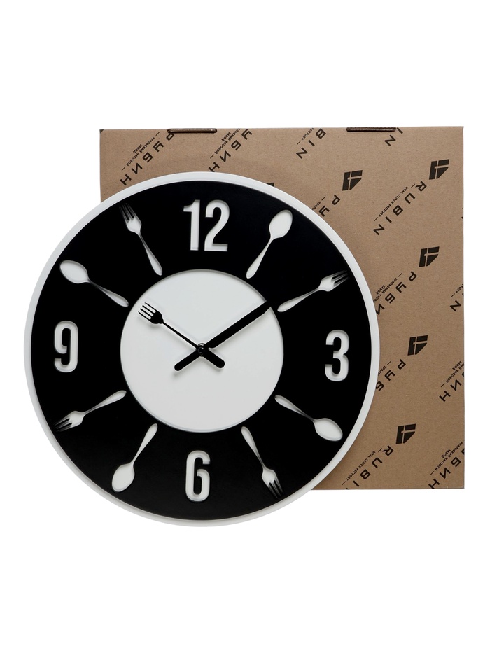 Часы настенные интерьерные «Вилка-ложка», d=35 см, бело-чёрные