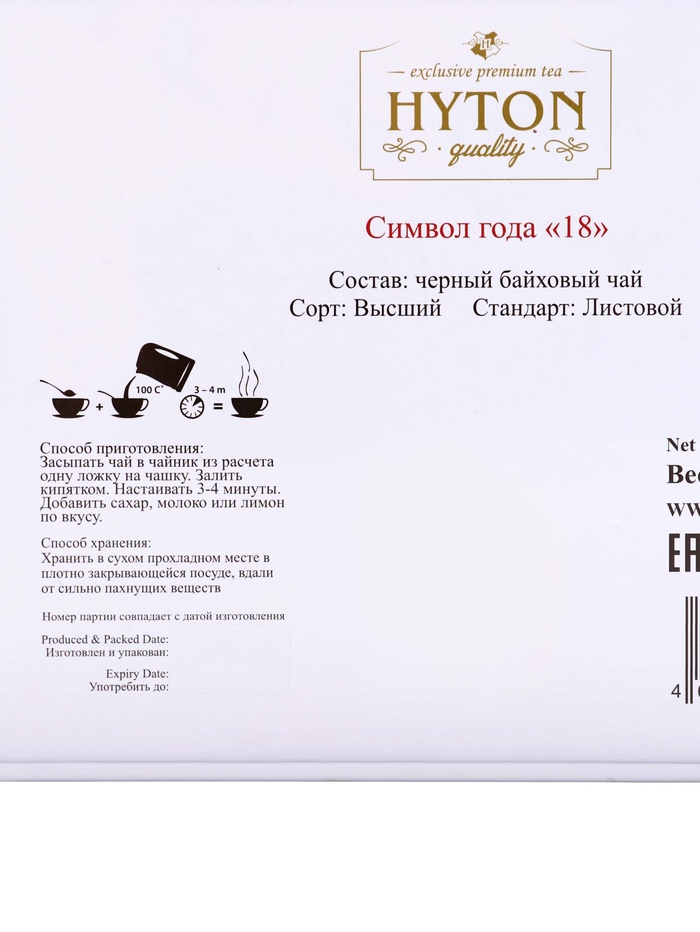 Технические характеристики Чай чёрный новогодний HYTON «Шкатулка оранжевая с символом года», 50 г