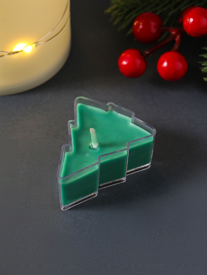 Чайная свеча ароматическая "Ель" зелёная, аромат рождественская ночь 5х4х2,1 см