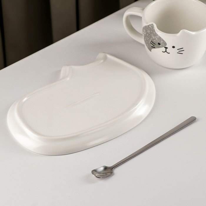 Чайная пара с ложкой «Котик», чашка 200 мл, блюдце 18,5×13,5 см