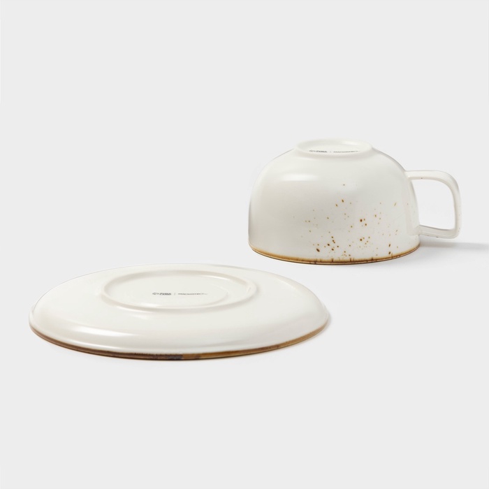 Чайная пара фарфоровая Magistro «Церера», 2 предмета: чашка 250 мл, блюдце d=16,5 см, цвет белый