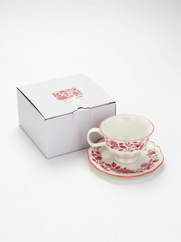 Чайная пара «Розовый сад»: кружка 280 мл, блюдце d=16 см, ручная работа
