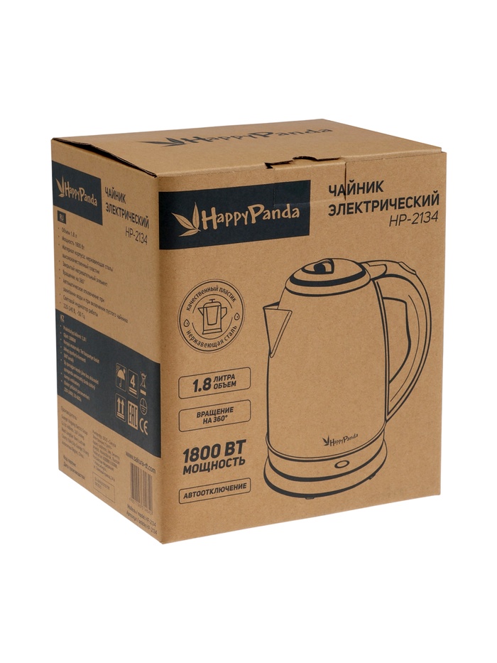 Технические характеристики Чайник электрический SAKURA Happy panda HP-2134, 1.8 л, 1800 Вт, металл, серый