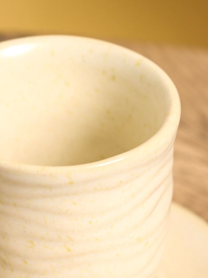 Элегантная чайная пара «Камень» с эффектом россыпи бежевой крошки. Идеальный дуэт чашки и блюдца для изысканных чаепитий.