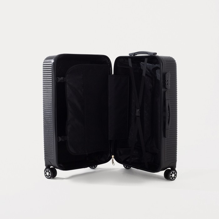 Чемодан средний 60 л (M) «Фабрика КАРТЕКС», отдел на молнии, кодовый замок, 4 колеса, цвет чёрный