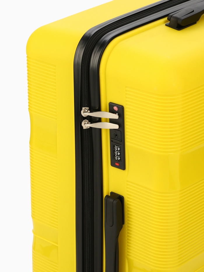 Чемодан на колёсах большой 99 л (L), на молнии, кодовый замок, 4 колеса, жёлтый