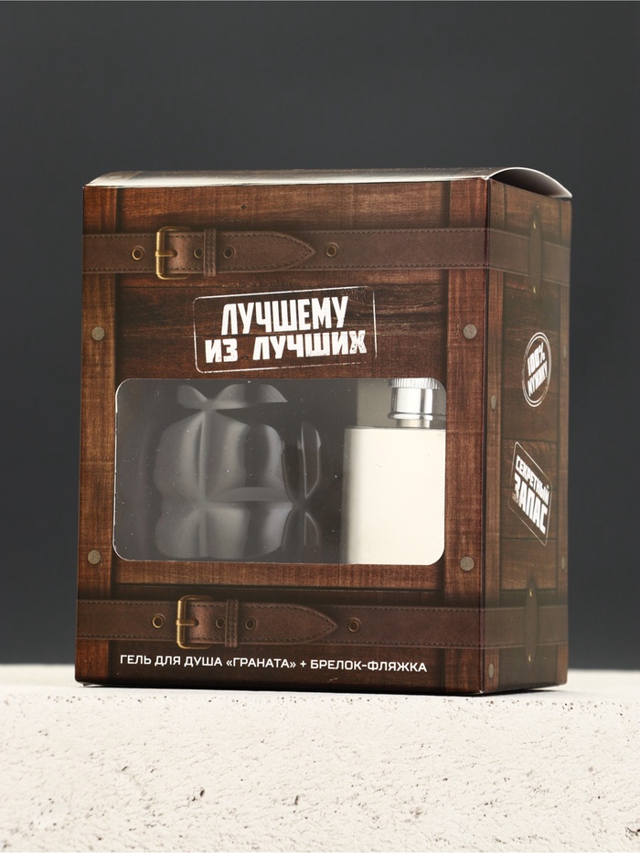 Подарочный набор мужской: гель для душа граната 250 мл и брелок фляжка, Чистое счастье