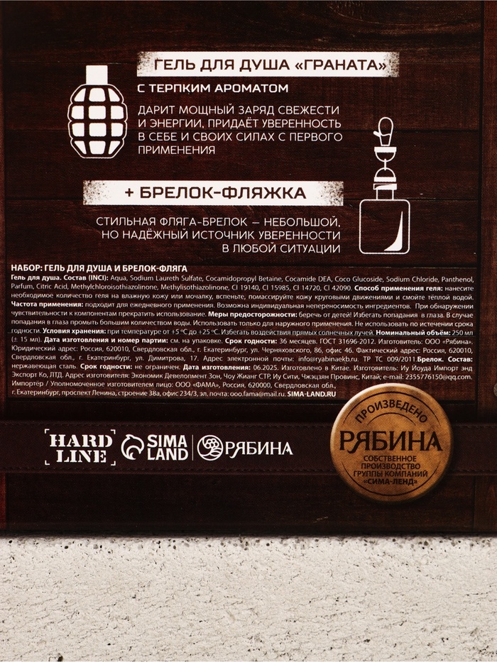 Технические характеристики Подарочный набор мужской: гель для душа граната 250 мл и брелок фляжка, Чистое счастье