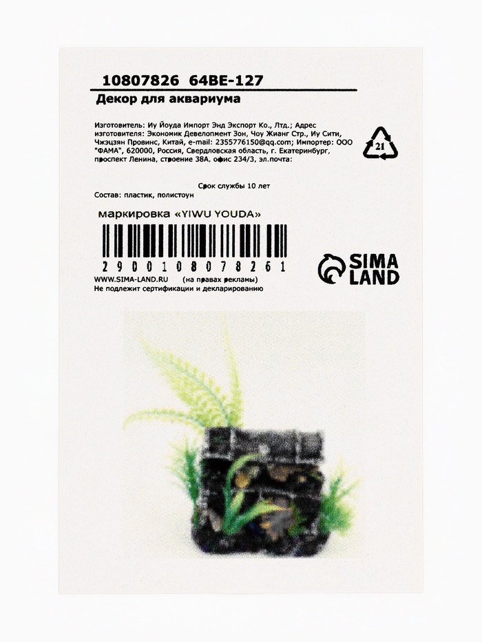 Игра воображения: Декор работает как триггер для восприятия. У детей он вызывает ассоциации с пиратами и затонувшими кораблями, у взрослых — с подводной археологией. При этом внутри может прятаться мелкая рыба или беспозвоночные — сундук становится одновременно и укрытием, и частью ландшафта. Идеально подходит для тех, кто хочет добавить сюжет в аквариум без перегруза. Поставьте его на дно — и мир под стеклом сразу станет глубже.