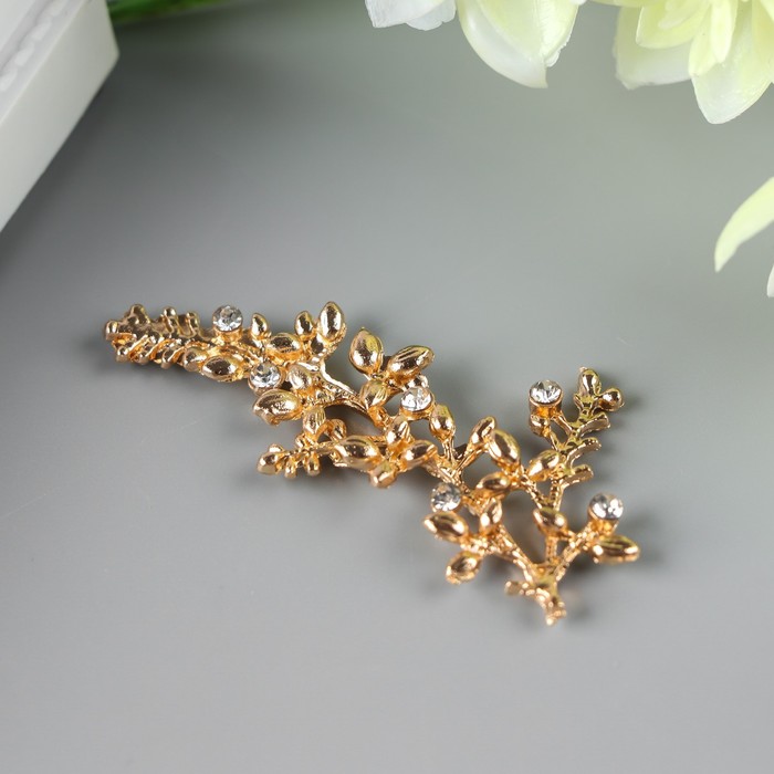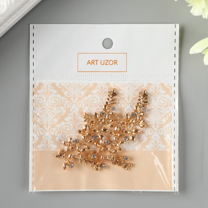 Декор для творчества металл "Веточка" стразы, золото 2,2х4,7 см