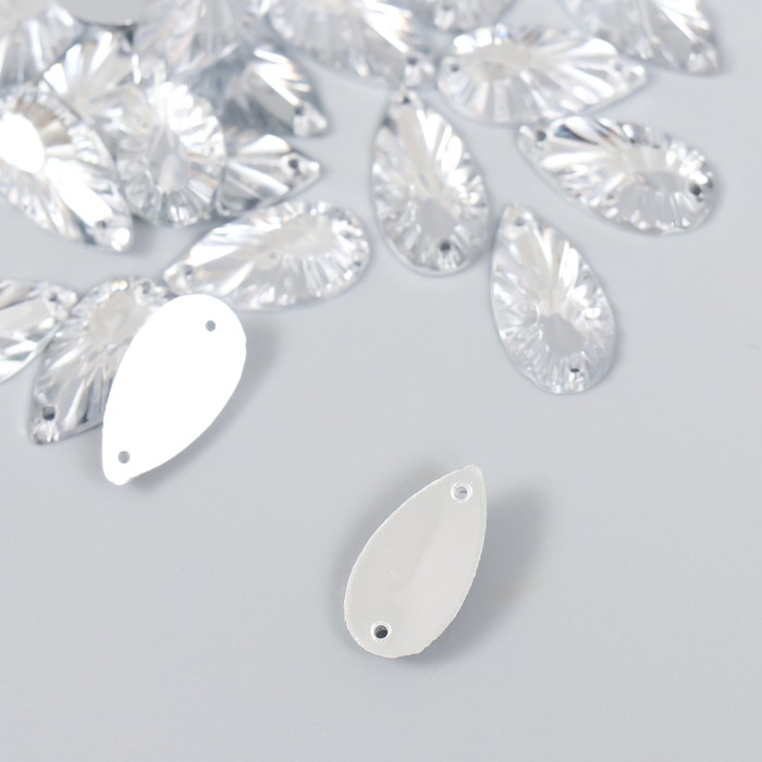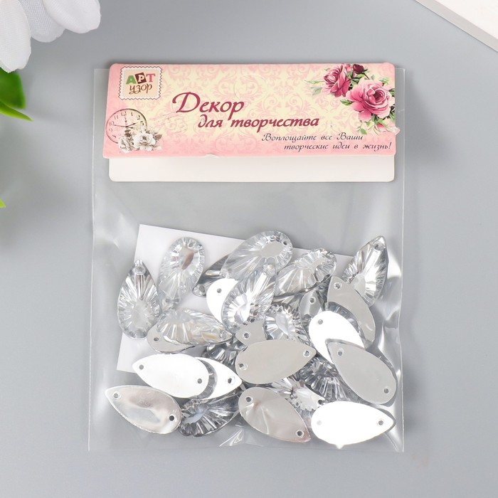 Декор для творчества пластик пришивной "Капельки-лучи" набор 30 шт серебро 0,9х1,6х0,3 см