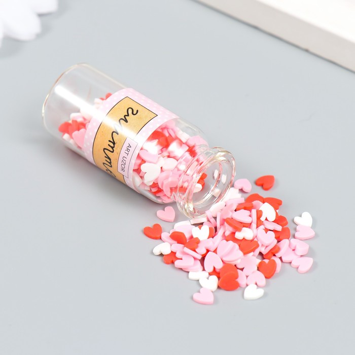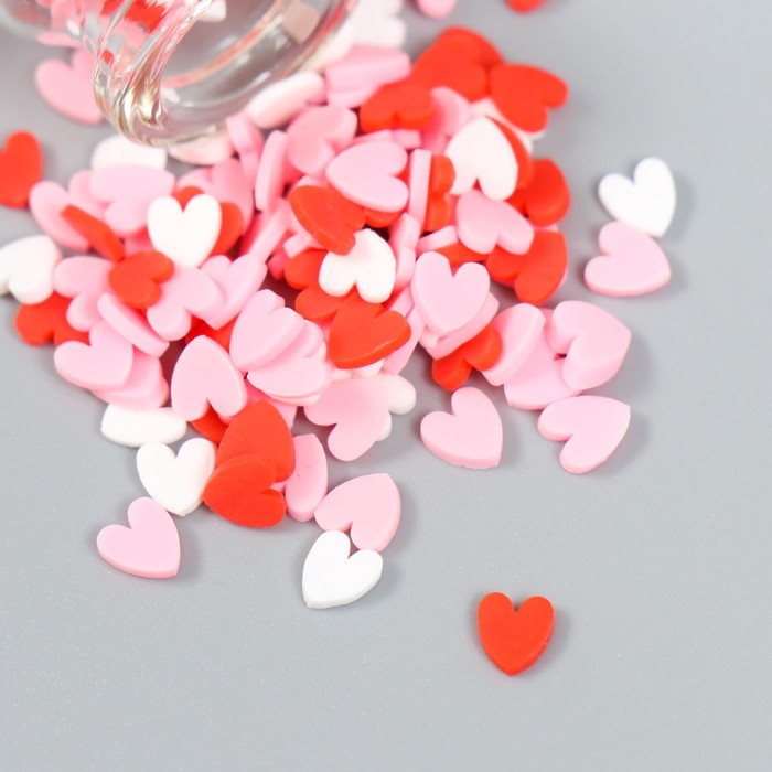 Декор для творчества пластик "Сердечки. Красный, белый, розовый" набор 8 гр 5х2х2 см