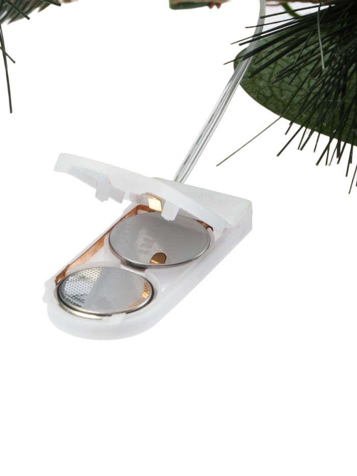 Изготовленный из дерева и пластика, декор отличается прочностью и лёгкостью, что облегчает его монтаж на стену, дверь или в универсальном варианте. Питание от двух батареек CR2032 обеспечивает автономность и свободу размещения без необходимости подключения к электросети. Постоянный режим свечения гарантирует стабильный и приятный свет без мерцания.
