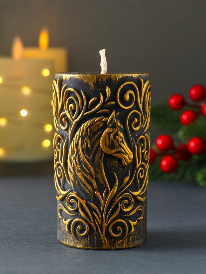 Декоративная свеча "Столбик с лошадью" (бронза) 215 г 55х55х100 мм
