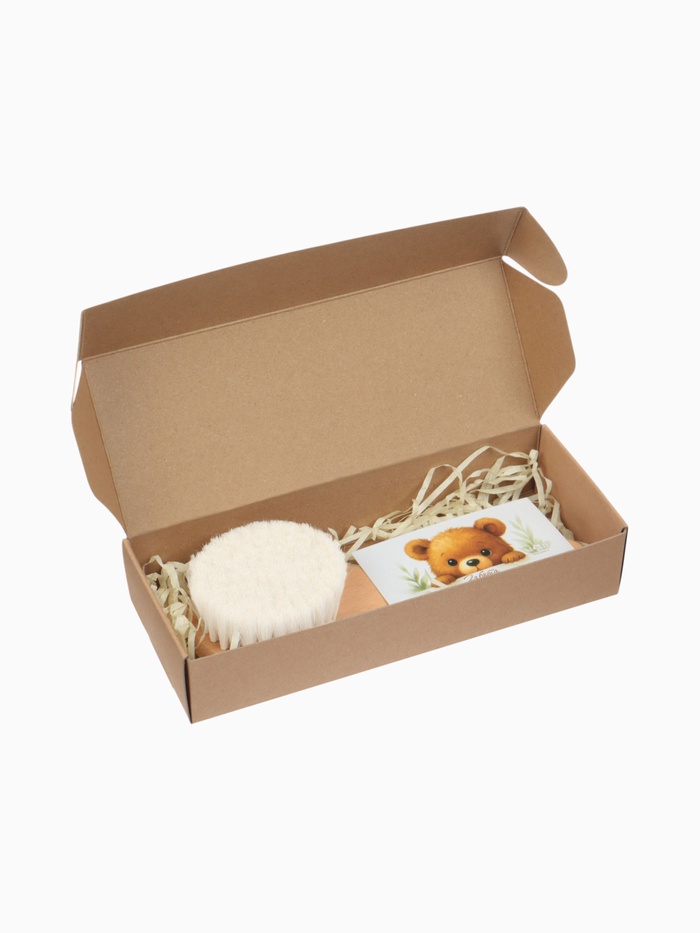 Расчёска упакована в коробку — станет продуманным и практичным подарком для молодых родителей на выписку, крестины или просто без повода.