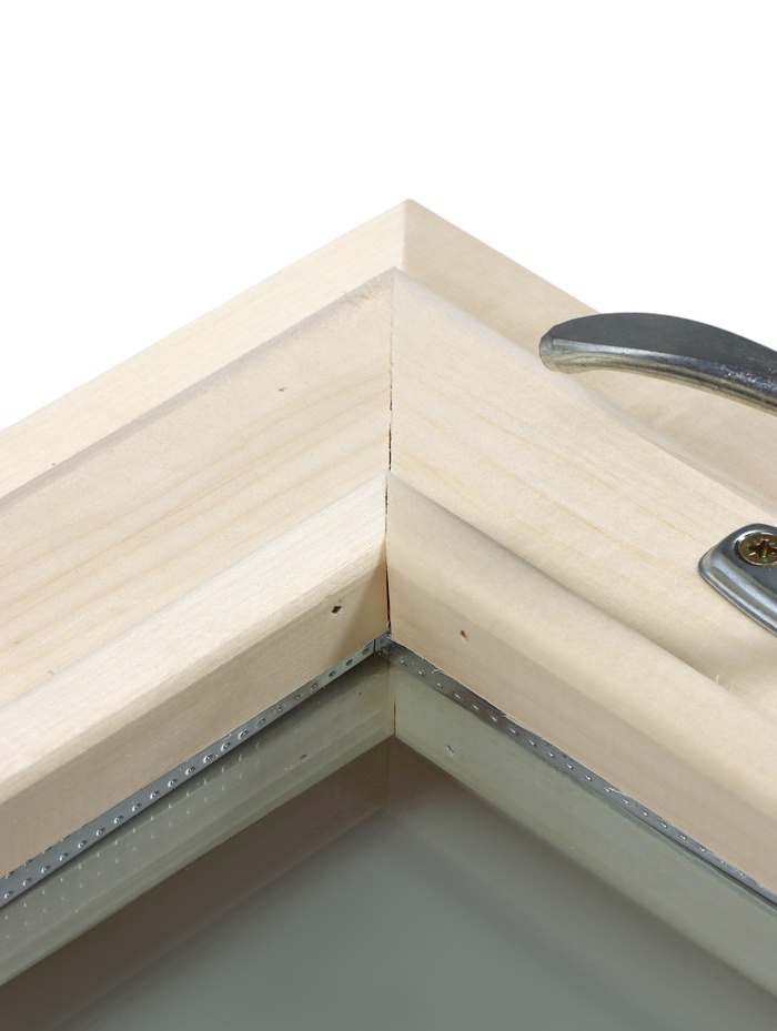 Технические характеристики Деревянное окно для бани, 30×30 см, стеклопакет