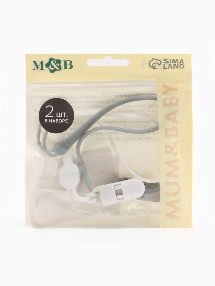 Держатель для соски - пустышки, силикон, 2 шт., белый, серый M&B