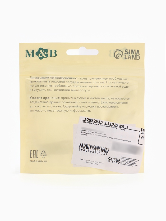 | Материалы из которых произведен товарПолипропилен, силикон | Минимальная партия1 | НовинкаДа |