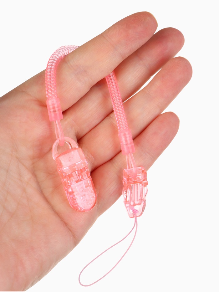 Особенностью держателя является конструкция в виде пружинки, которая обеспечивает высокую эластичность. Благодаря этому тросик удобно адаптируется к движениям ребёнка, предотвращая спутывание и обеспечивая комфорт и безопасность в любой ситуации. Такой держатель помогает всегда держать пустышку под рукой и поддерживать её чистоту.