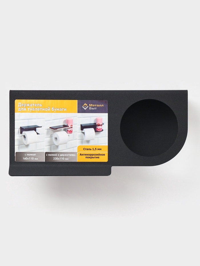 Держатель для туалетной бумаги с полочкой с отверстием для освежителя, чёрный